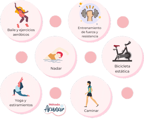- Aeróbicos para mujeres embarazadas que incluyen ejercicios de bajo impacto.